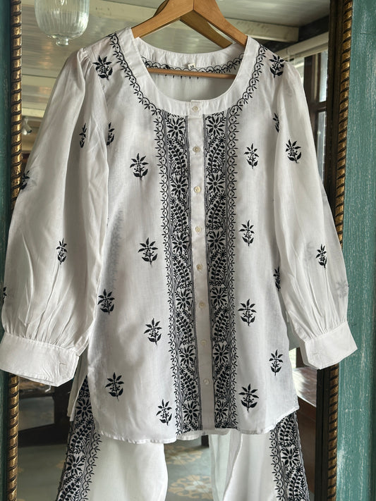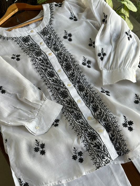 Black & White Cotton Chikankari Co-Ord Set