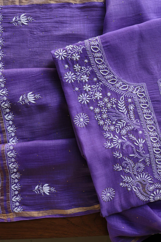 Purple Shade Noor Organza Silk Chikankari Unstitched Kurta Dupatta Set