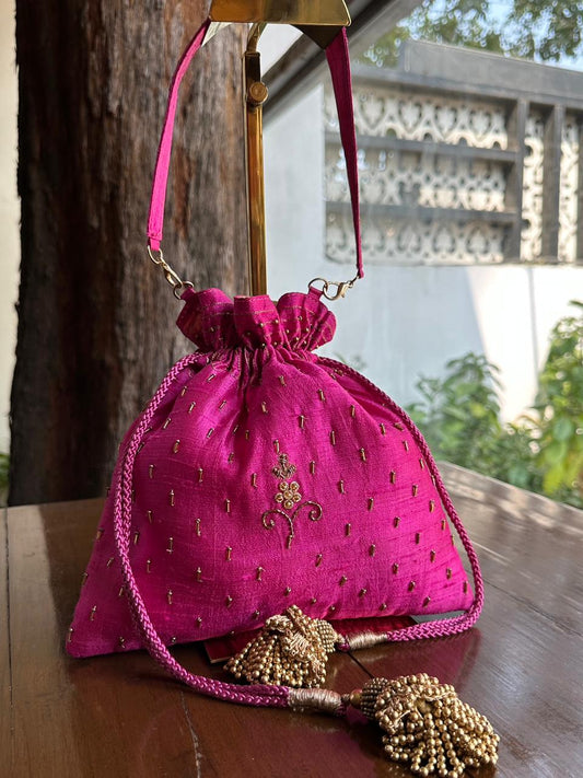 Hot Pink & Gold Raw Silk Zardosi Polti Bags
