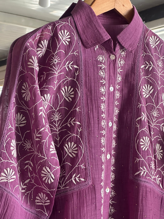 Plum Purple Cotton Chikankari Top