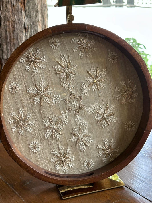 Saman Fawn Silk Chikankari Tray with Zari Work