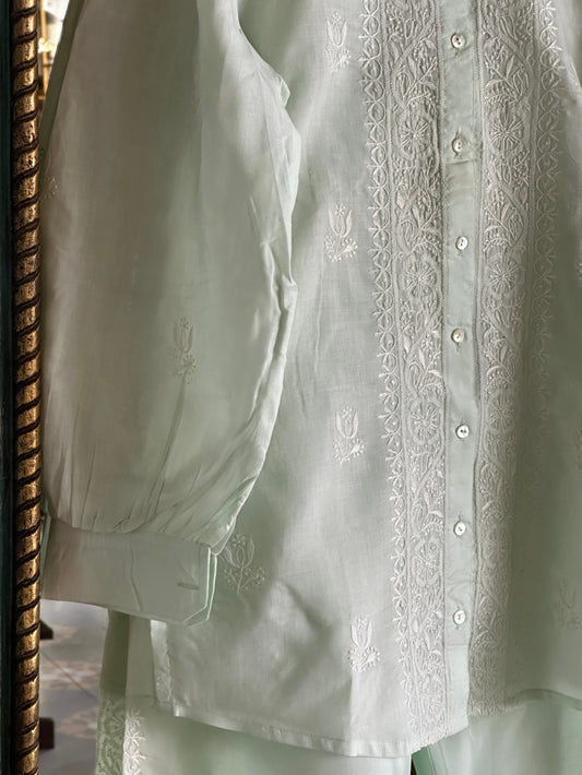 Sea Green Cotton Chikankari Co-Ord Set