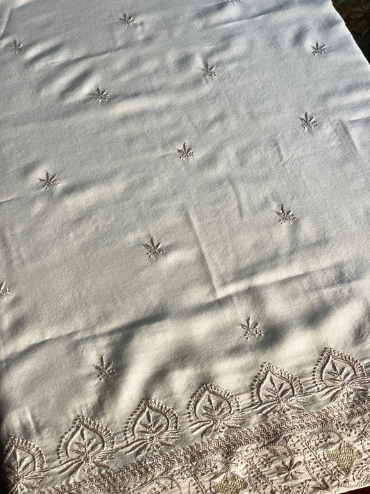 Natural Off White Shade Saman Pashmina Resham Thread Fine Chikankari Shawl