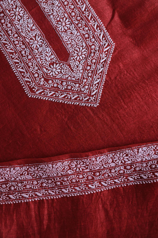 Red All Over Chikankari Malmal Unstitched Men's Kurtas Fabric