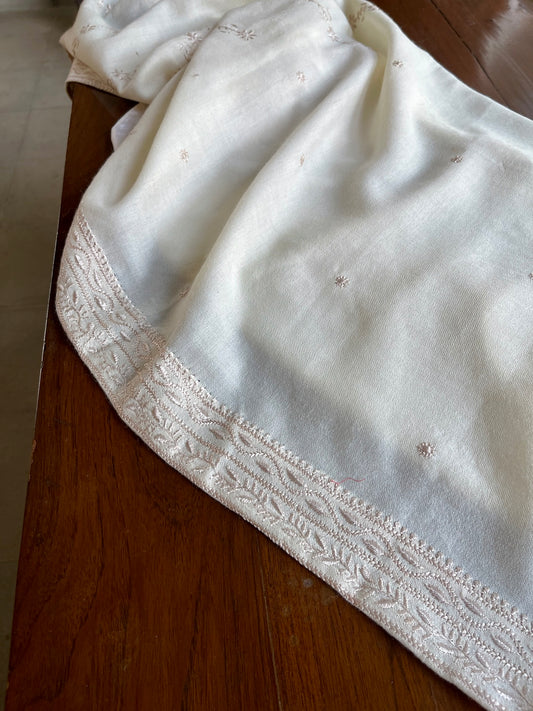 Natural Beige Shade Saman Pashmina Resham Thread Chikankari Shawls
