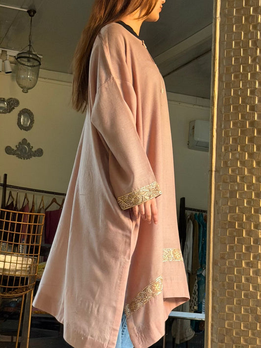 Dusty Pink Shade Pashmina Kashmiri Phiran – Ari & Chikankari Detailing