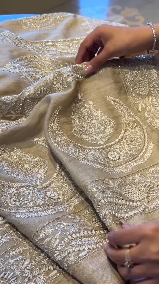 Natural Beige Shade Fine Chikankari Ari Tissue Silk Dupatta