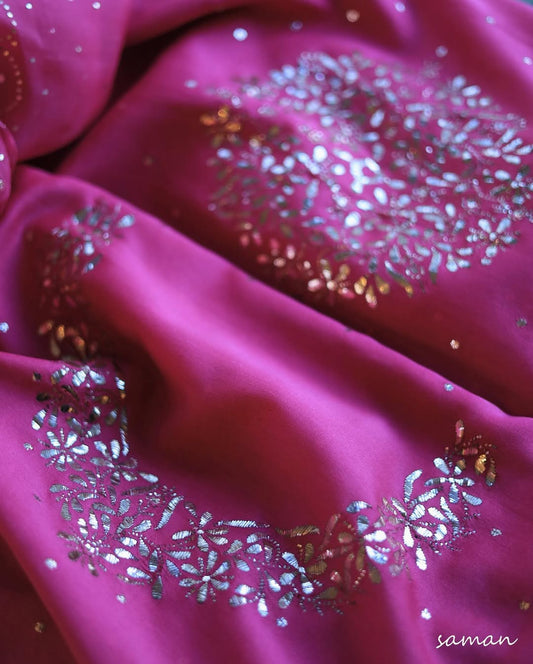 Hot Pink Chanderi Silk Mukaish Badla Unstitched Fabrics