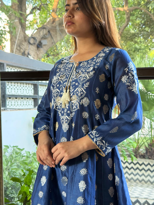 Blue Zari Chanderi Chikankari Co-Ord Set