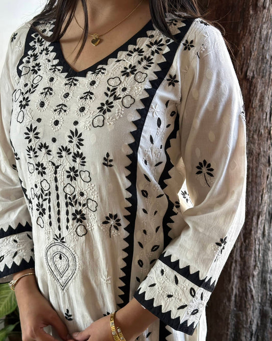 Black & White Applique Work With Fine Chikankari Ready to Wear Kurta