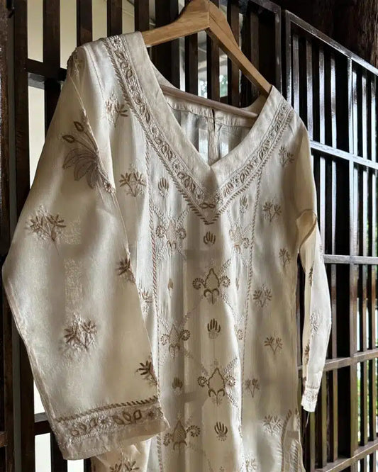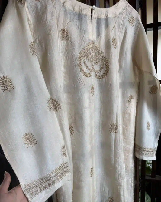 Natural Tussar Silk Chikankari Ready to Wear Kurta Dress