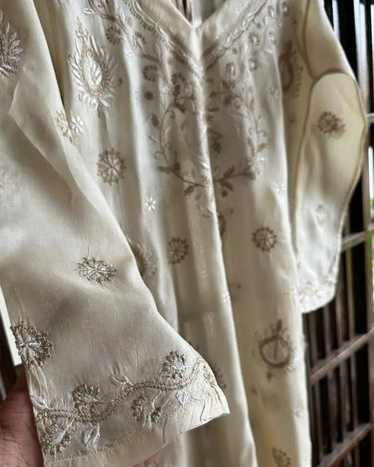 Mulberry Silk Resham Chikankari Ready to Wear Kurta