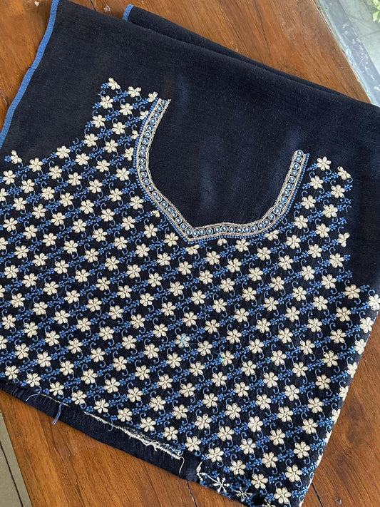Black Moonga Silk Chikankari Unstitched Blouse Fabric