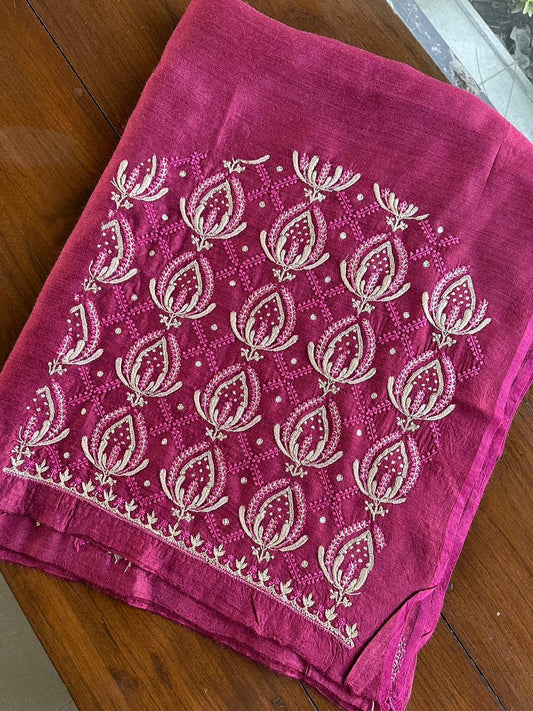 Rani Pink Moonga Silk Chikankari Unstitched Blouse Fabric