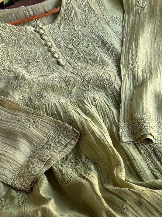 Mehndi Green Chanderi Kurta – Ready to Wear