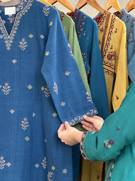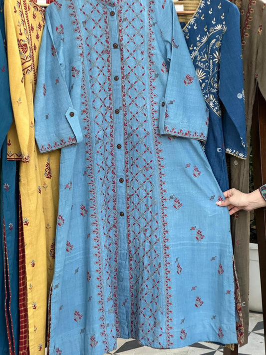 Dull Blue Shade Malkha Handspun Khadi Kurtas Unisex Fabric