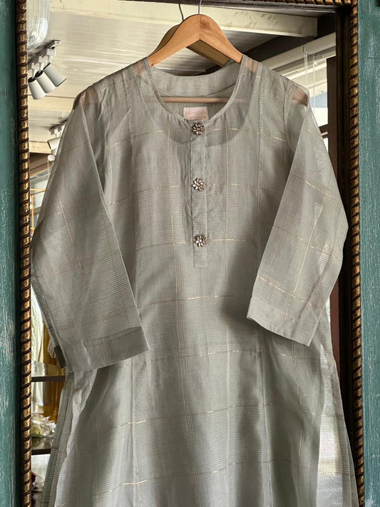 Natural Grey Zari Kota Ready to Wear Kurta Set