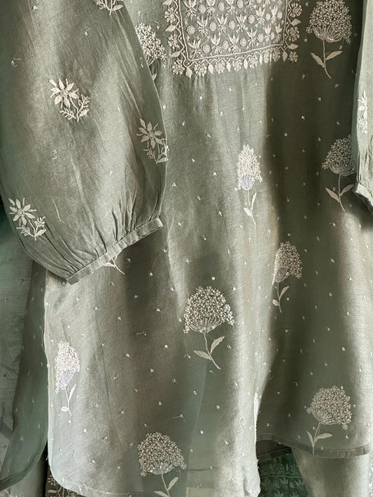 Sage Green Shade Tissue Silk Chikankari Co-Ord Set