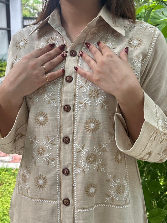 Soft Beige Malkha Cotton Chikankari Co-ord Set