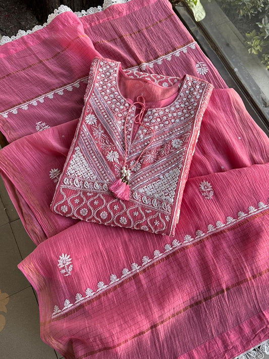 Basak Chikankari With Mukaish Work Ready To Wear Kurta Dupatta Set