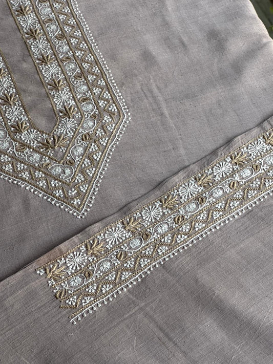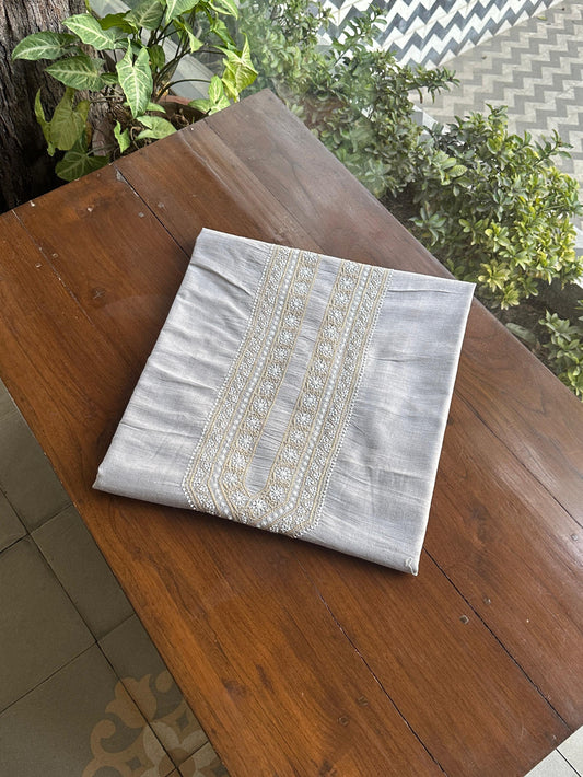 Natural Grey Shade Mulmul Chikankari Unstitched Men's Kurtas Fabric