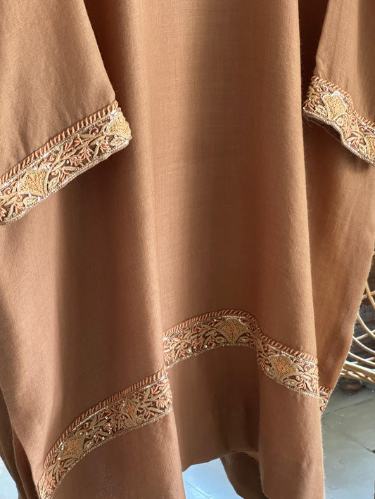 Beige Shade Kashmiri Pashmina Phiran with Handcrafted Ari & Chikankari Embroidery