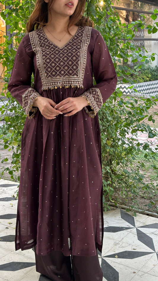 Coke Brown Sico (Silk Cotton) Chikankari Tux Kurta Set