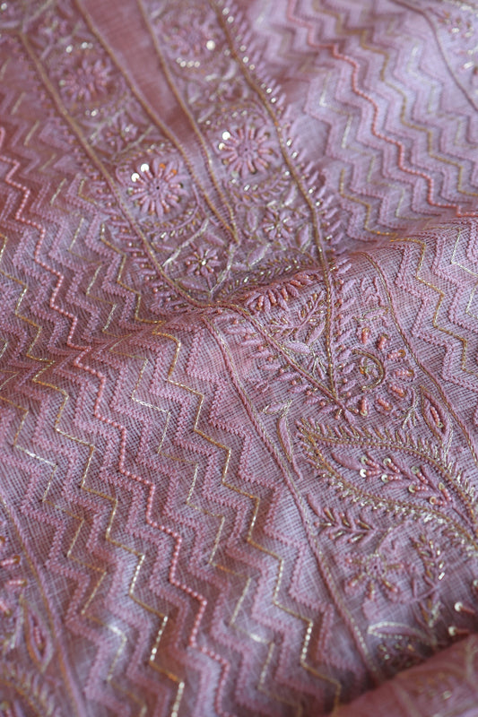 Dusty Rose Tissue Silk Chikankari Unstitched Fabric