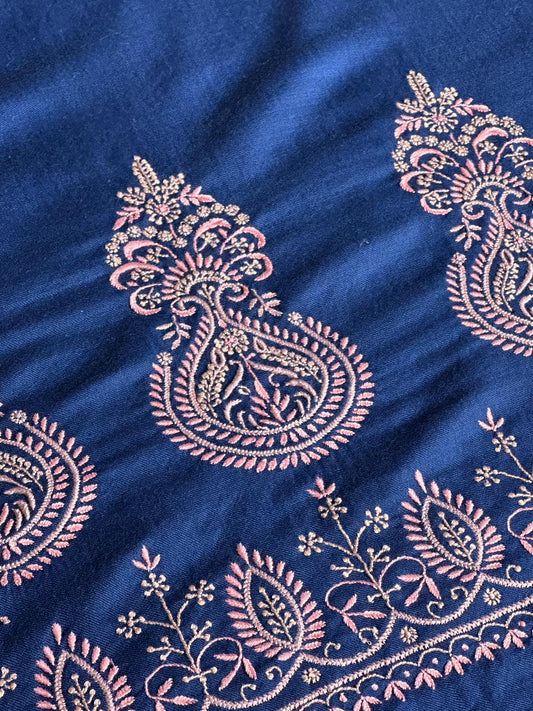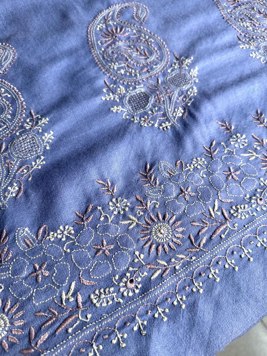 Ink Blue Shade Saman Pashmina Fine Chikankari Shawl