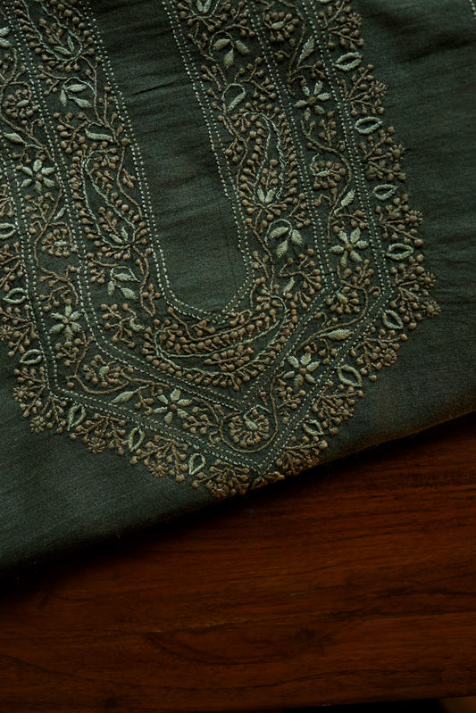 Dark Green Mulmul Chikankari Unstitched Men's Kurtas Fabric