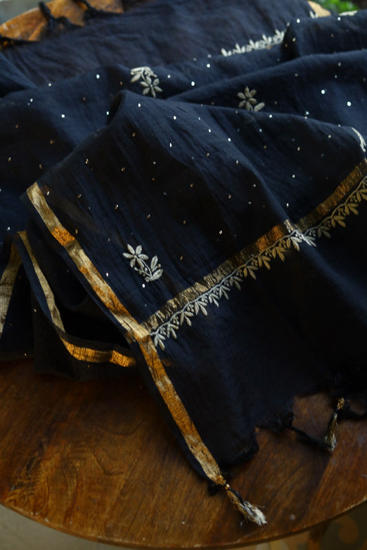 Black Kota Chikankari Mukaish Kamdani Dupatta With Tissue Border
