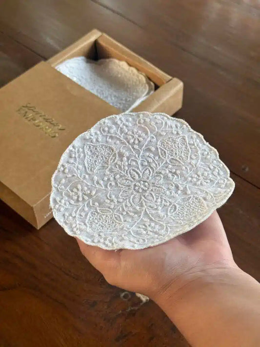 Linen White Chikankari With Sequins Table Coasters (Set of 6 Pcs)