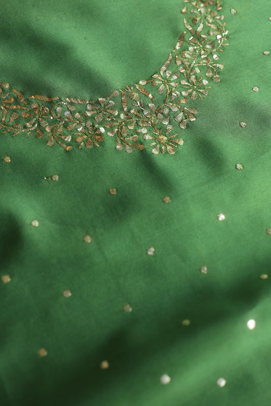 Forest Green Chanderi Silk Mukaish Badla Unstitched Fabrics