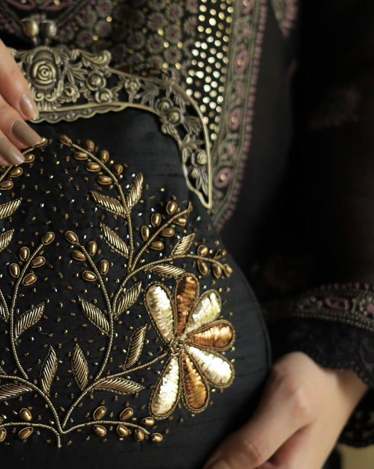 Jet Black Shade | Saman Velvet Ready To Wear Kurta Set