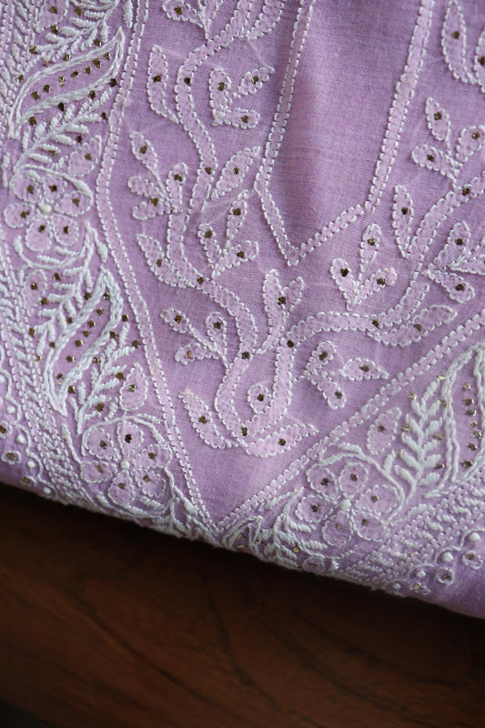 Pastel Purple Tissue Silk Chikankari Unstitched Fabric
