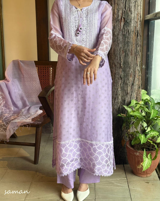 Neon Noor Organza Silk Chikankari Unstitched Kurta Dupatta Set