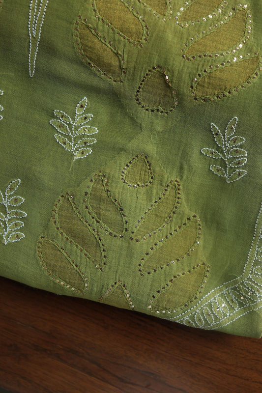 Mehndi Green Daraz Chanderi Chikankari Kurta Fabric