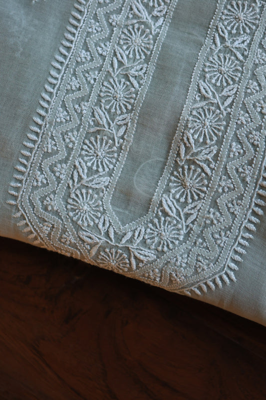 Muted Blue Mulmul Chikankari Unstitched Men's Kurtas Fabric