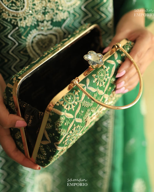 Peacock Motif Chikankari Moonga Silk Handle Sling Clutch