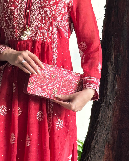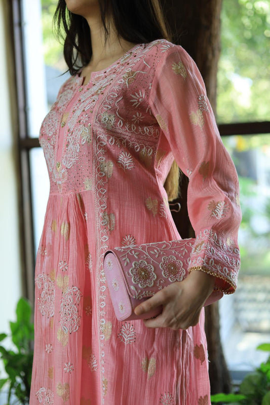 Pastel Pink Magnolia Chikankari With Ari Work Sling Clutch