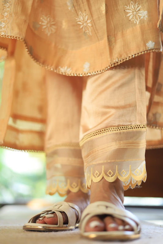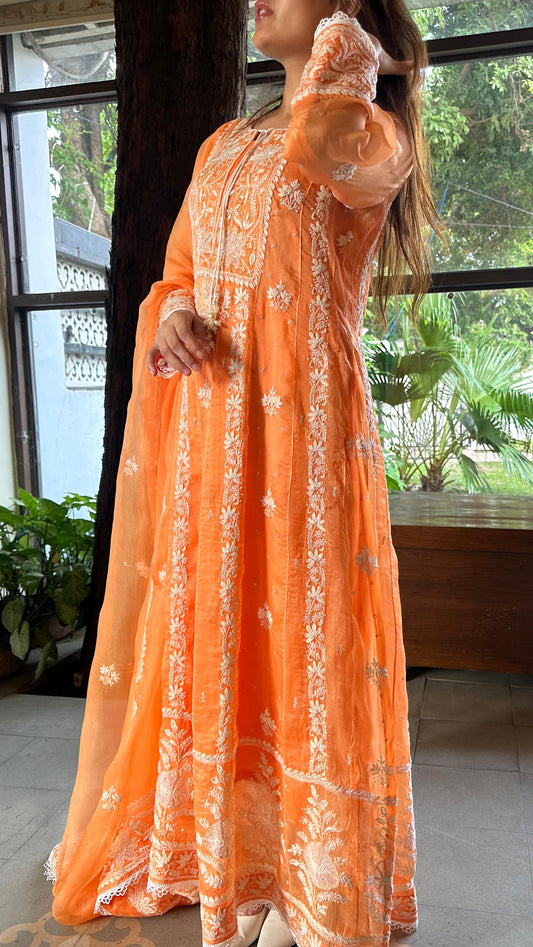 Orange Noor Organza Chikankari Anarkali Kurta With Dupatta