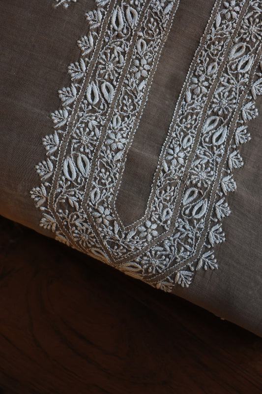 Natural Grey Shade Mulmul Chikankari Unstitched Men's Kurtas Fabric