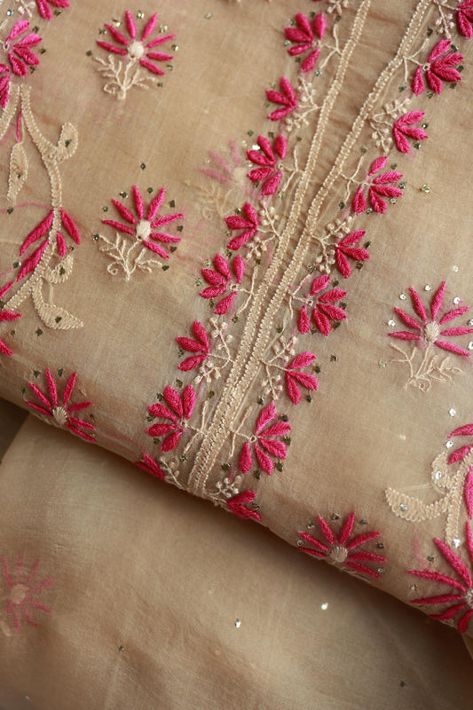 Tulip Pink Shade Mal Maheshwari Chikankari Unstitched Fabric