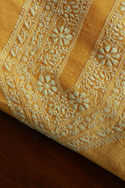 Mustard Moonga Silk Chikankari Men’s Kurta Fabrics