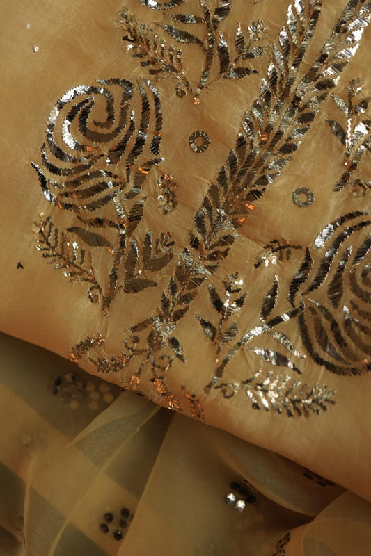 Soft Vanilla Shade Organza Silk Chikankari Unstitched Fabric
