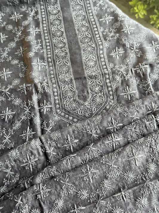 Grey Daraz Chanderi Chikankari Kurta Fabrics