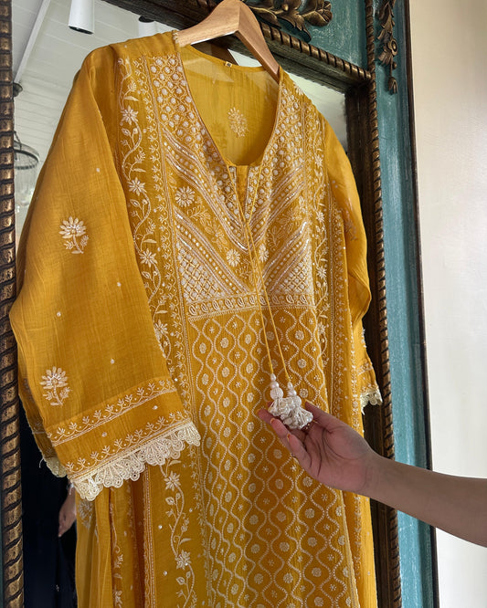 Yellow Jamdani X Chikankari Ready To Wear Kurta Dupatta Set