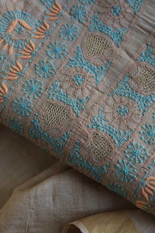 Natural Tussar Silk Chikankari Fabric