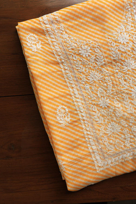 Yellow Kota Chikankari Unstitched Women's Kurta Fabric