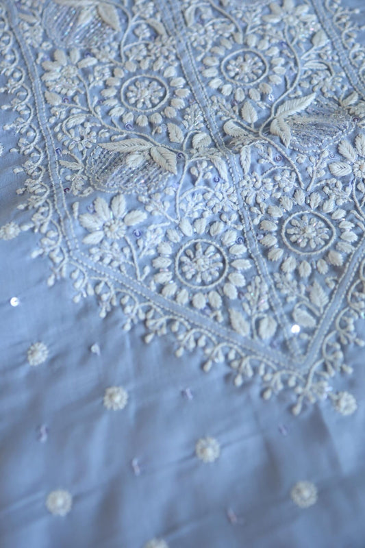 Powder Blue Crescent Chandbala Chikankari Unstitched Fabric
